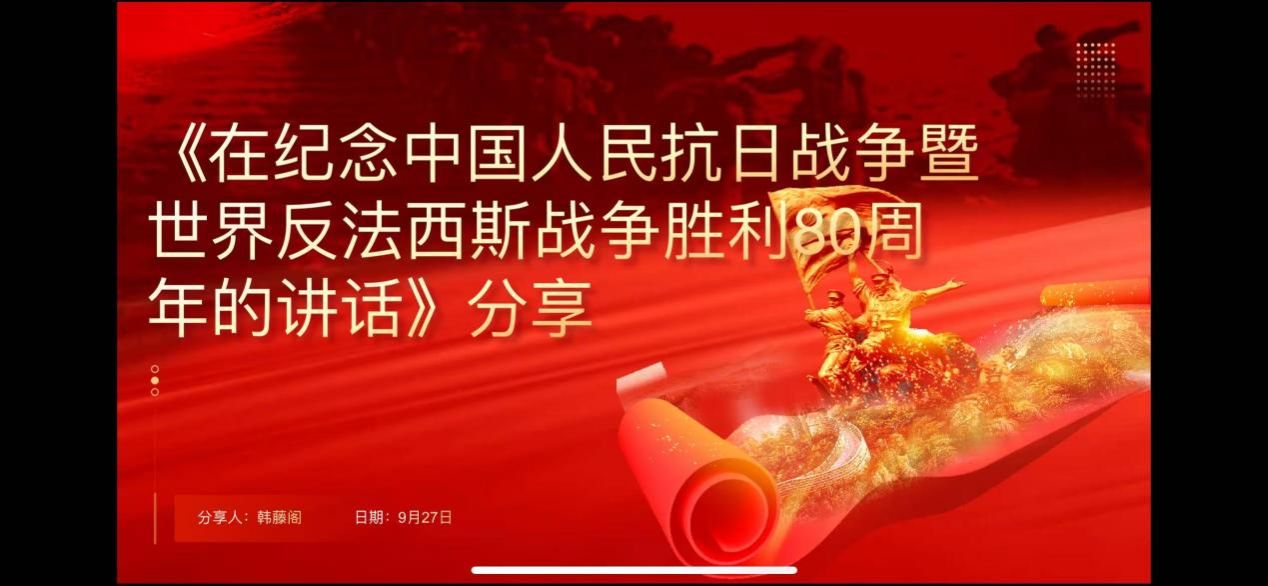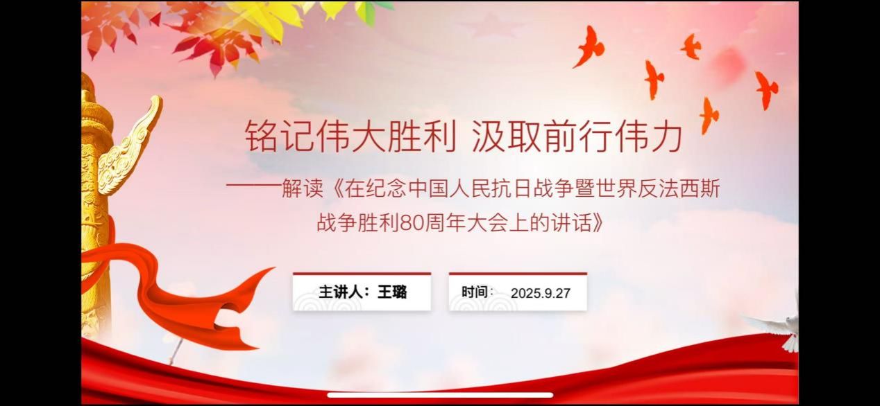 习近平新时代中国特色社会主义思想学习读书小组第六十期活动以《习近平在纪念中国人民抗日战争暨世界反法西斯战争胜利80周年大会上的讲话》为主题进行学习研讨。本次读书会由限制级