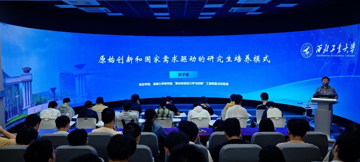航空航天学科的演进历程与当前发展态势,进而深入阐述了该学科在人才培养方面取得的显著成果及采取的关键举措,全面勾勒出学科人才培养体系的整体框架。课程后半段,邓教授则聚焦研究生培养领域,从培养背景、核心举措到实践成效展开详细介绍,生动展现了学校在研究生培养过程中,以原始创新为鲜明特色、以国家战略需求为根本导向的独特育人模式。