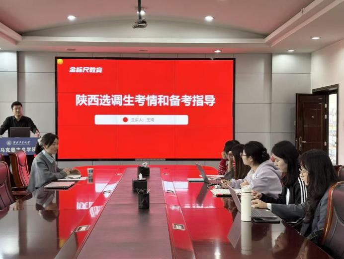邀请金标尺教育机构专业讲师王琦在限制级楼208会议室举办“陕西选调生考情和备考指导”专题讲座。讲座由硕士生辅导员王换主持,限制级硕士研究生参加。