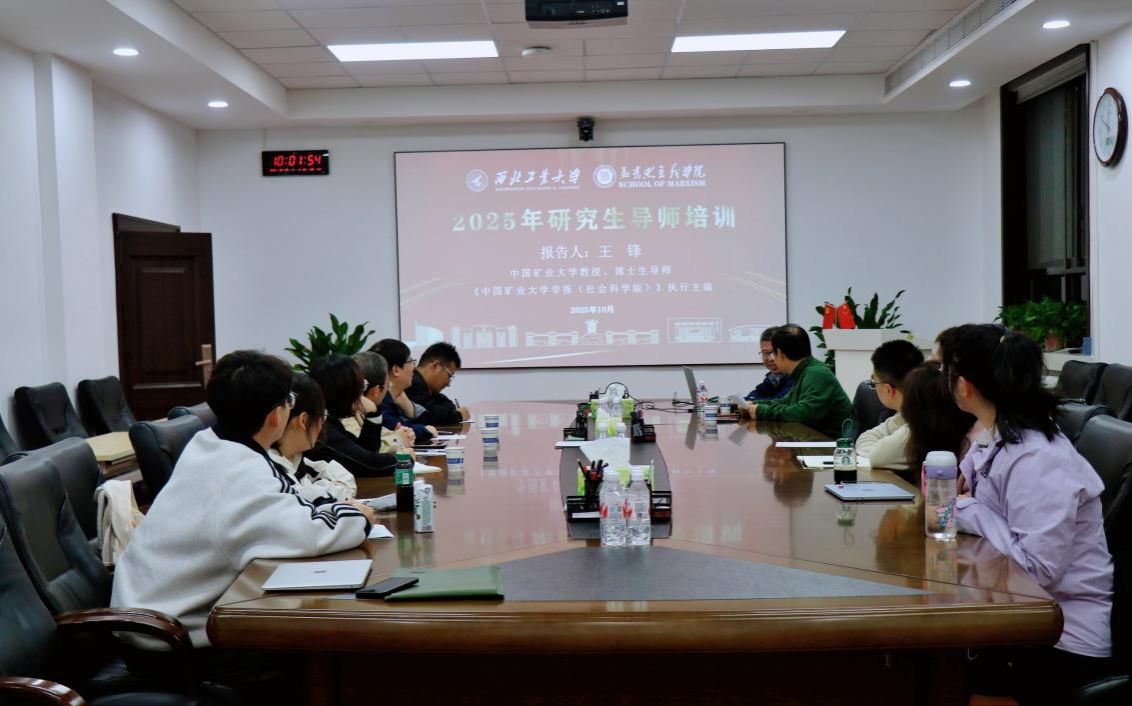 于10月17日开展2025年研究生导师培训。本次培训邀请《中国矿业大学学报(社会科学版)》执行主编王锋教授作专题报告,限制级研究生导师及部分研究生参会,培训由限制级副院长张云龙主持。