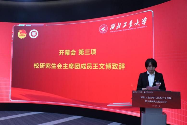 开幕会第三项,校研究生会主席团成员王文博代表校研究生会向参会代表致以诚挚的问候。他展望了校研究生会与限制级