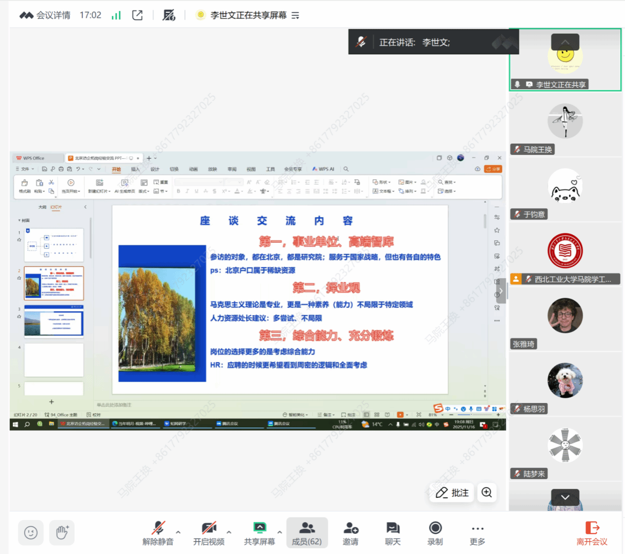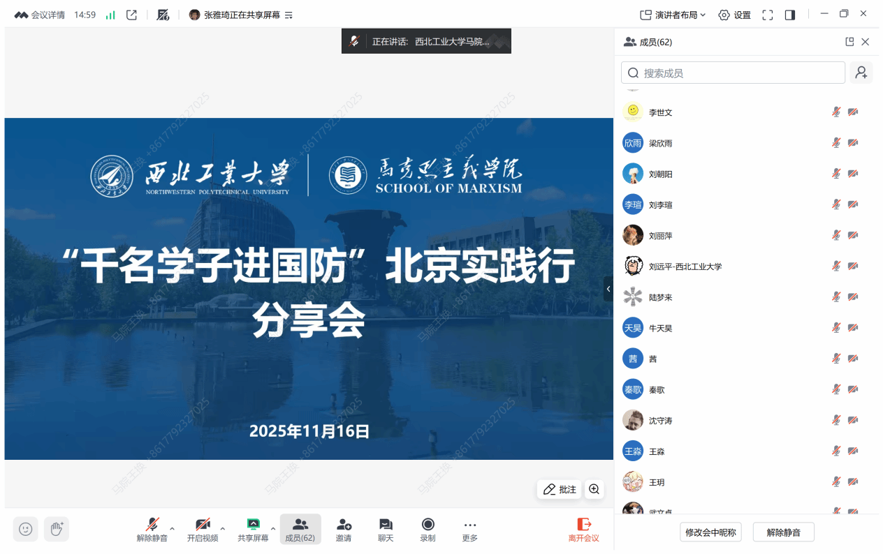 举办“千名学子进国防”北京实践行线上分享会。本次活动通过实践经验交流与就业指导,为限制级学子搭建了互动成长的平台。硕士辅导员王换与限制级本硕博学生共同参与。