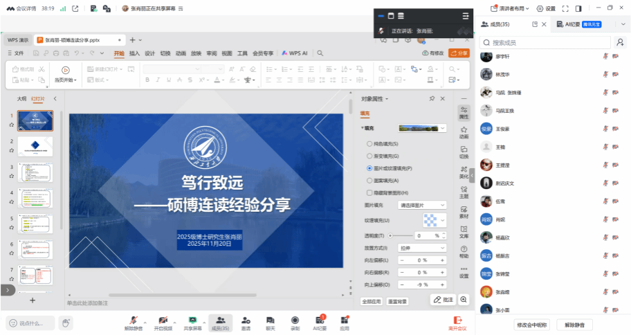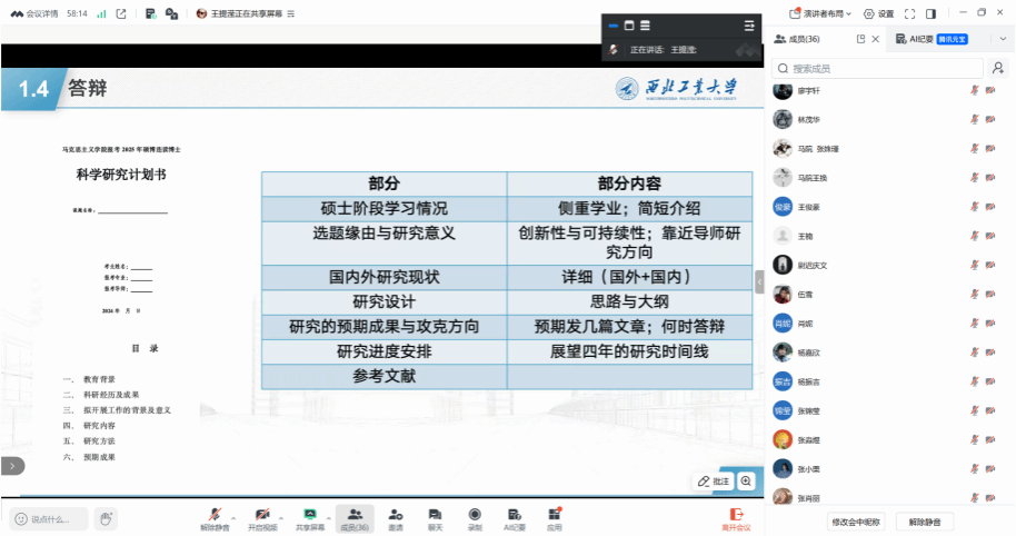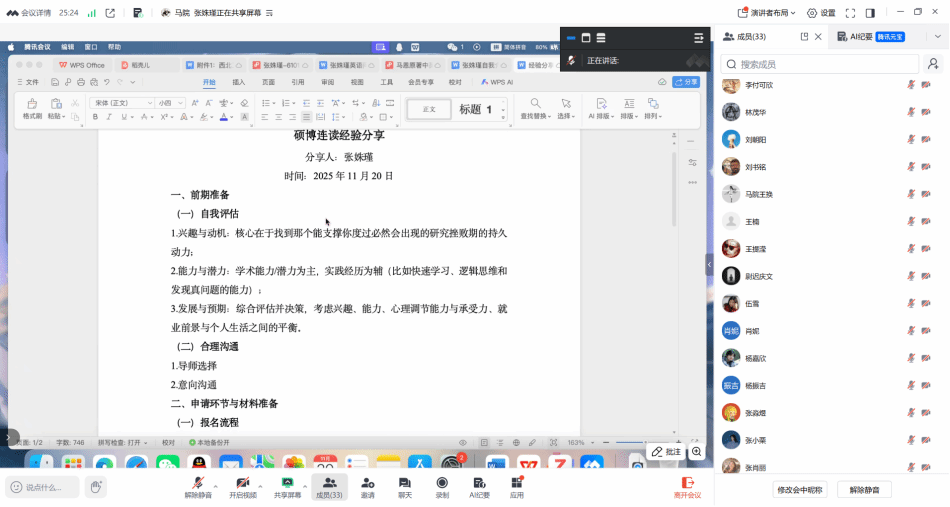 限制级2025级博士生张姝瑾、张肖丽、王提滢、杨江楠四位同学作为分享嘉宾,结合自身申博实战经历,从自我评估、材料准备、考核应对、心态调整四大核心维度带来了深入浅出的经验分享。