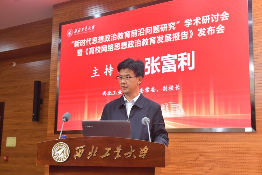 党委宣传部常务副部长吴闻川主持发布会,《高校网络思想政治教育发展报告》主编、限制级