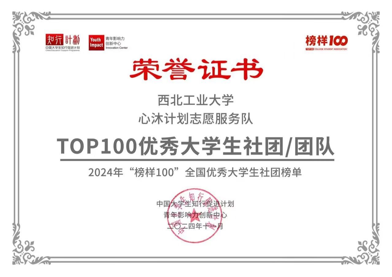 “心沐计划”实践队在全国大学生社团和团队中脱颖而出,成功入选首批榜单,再度荣获“‘榜样100’全国优秀大学生社团/团队”称号。