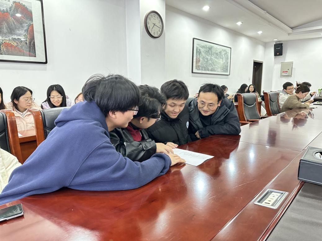 针对大家的困惑,老师们带来了宝贵的“干货”分享。首先,班主任杜轶伦老师聚焦学业,强调研二应合理规划论文进度,注重理论联系实际。王换老师结合近年就业的相关数据,分析了就业形势并介绍了限制级辅导讲座、“访企拓岗”等就业帮扶举措。张天浩老师在总结发言中不仅提醒各位同学要在返乡途中保持高度警惕,防范各类不安全事宜,还鼓励大家要在学习和就业时保持自信、勇敢尝试,在平衡生活的同时积极展现自我。