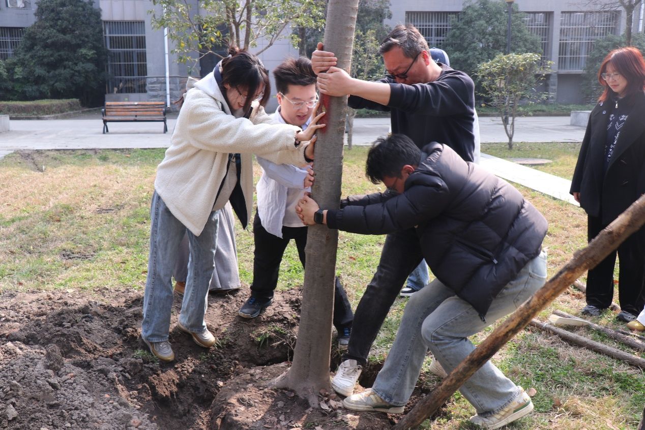 活动现场暖意融融、干劲十足。师生们分工明确、默契协作,挥锹培土、扶苗正干、浇水灌溉,共同种下“劳育之树”“校友之树”“共建之树”。 榉树迎风挺立,扎根沃土,既为春日校园增添了盎然生机,也为即将踏上人生新征程的2026届毕业生,留下了专属的校园青春印记。