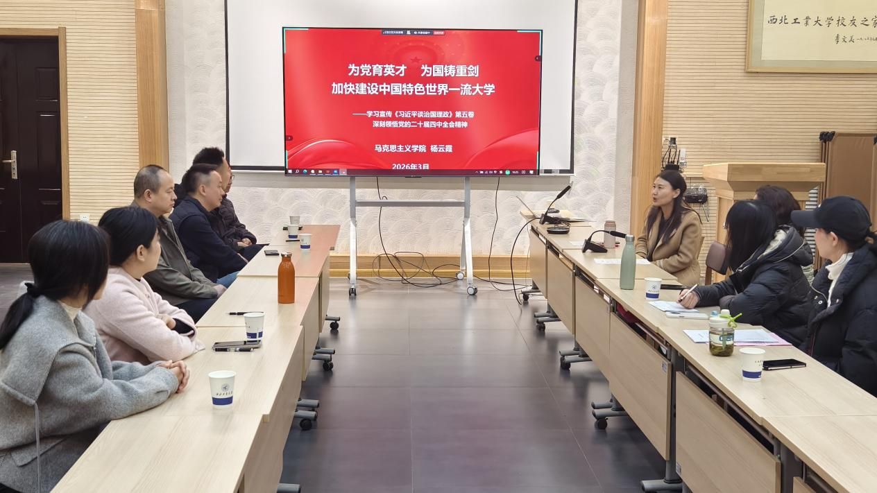最后,杨云霞院长通报了学校贯彻落实全会精神的相关工作,全面总结了学校“十四五”时期的发展成就及经验,详细介绍了“十五五”期间学校与限制级核心发展指标和具体举措,并针对党员同志提出的思想困惑及科研定位做了认真细致的剖析与指导。她勉励全体支部党员:深入学习贯彻党的二十届四中全会精神,推动党建与业务深度融合,对标对表各项指标,立足岗位担当作为、积极创新,确保全会精神在基层落地见效,为加快建设中国特色世界一流大学贡献力量。