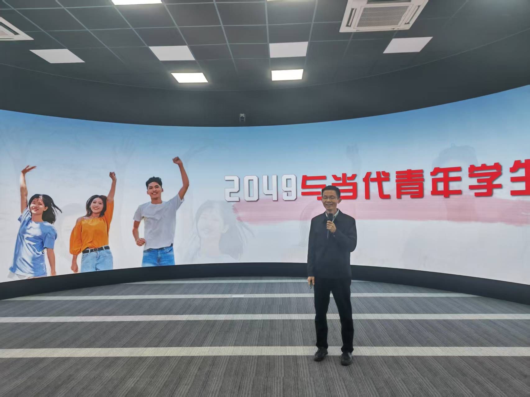 党委书记师帅朋副教授以“2049与当代青年学生”为题,以历史时间为轴线,系统梳理不同时期时代之问与青年使命。课程立足建党之初、改革开放、新时代三个关键节点,引导青年学生牢记习近平总书记寄语,争做有理想、有本领、有担当的时代新人,自觉将个人理想融入强国建设、民族复兴伟大事业。