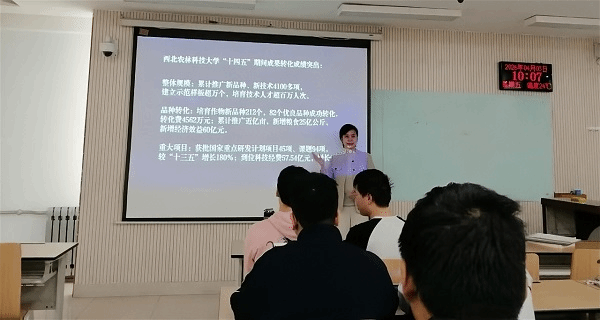 贺苗教授受邀赴西北农林科技大学、西安明德理工限制级开展“金课”巡讲,围绕“科技报国的使命担当”展开授课,以当代科技工作者卓越贡献为切入点,深入阐释科技报国的丰富内涵,引导青年学生深刻认识科技自立自强的极端重要性,激励大家在强国建设、民族复兴新征程中勇担时代使命。